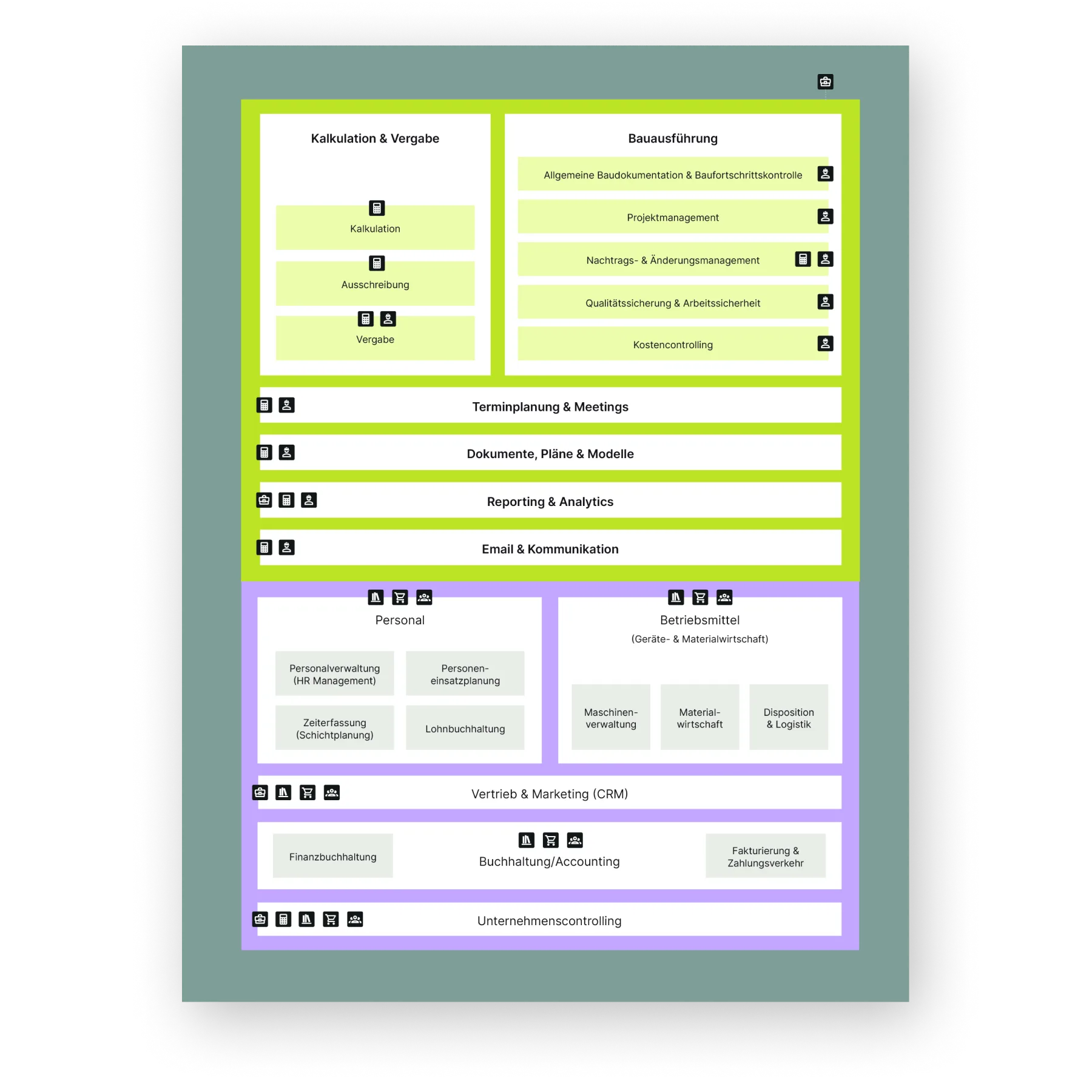 Wie sind die zentralen Systeme für Generalunternehmer aufgebaut?