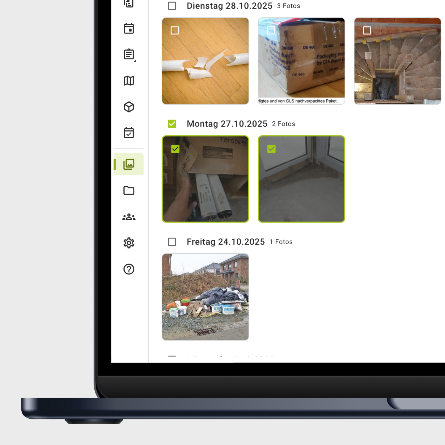 Alle Baustellenfotos zentral sammeln und im richtigen Zusammenhang wiederfinden.