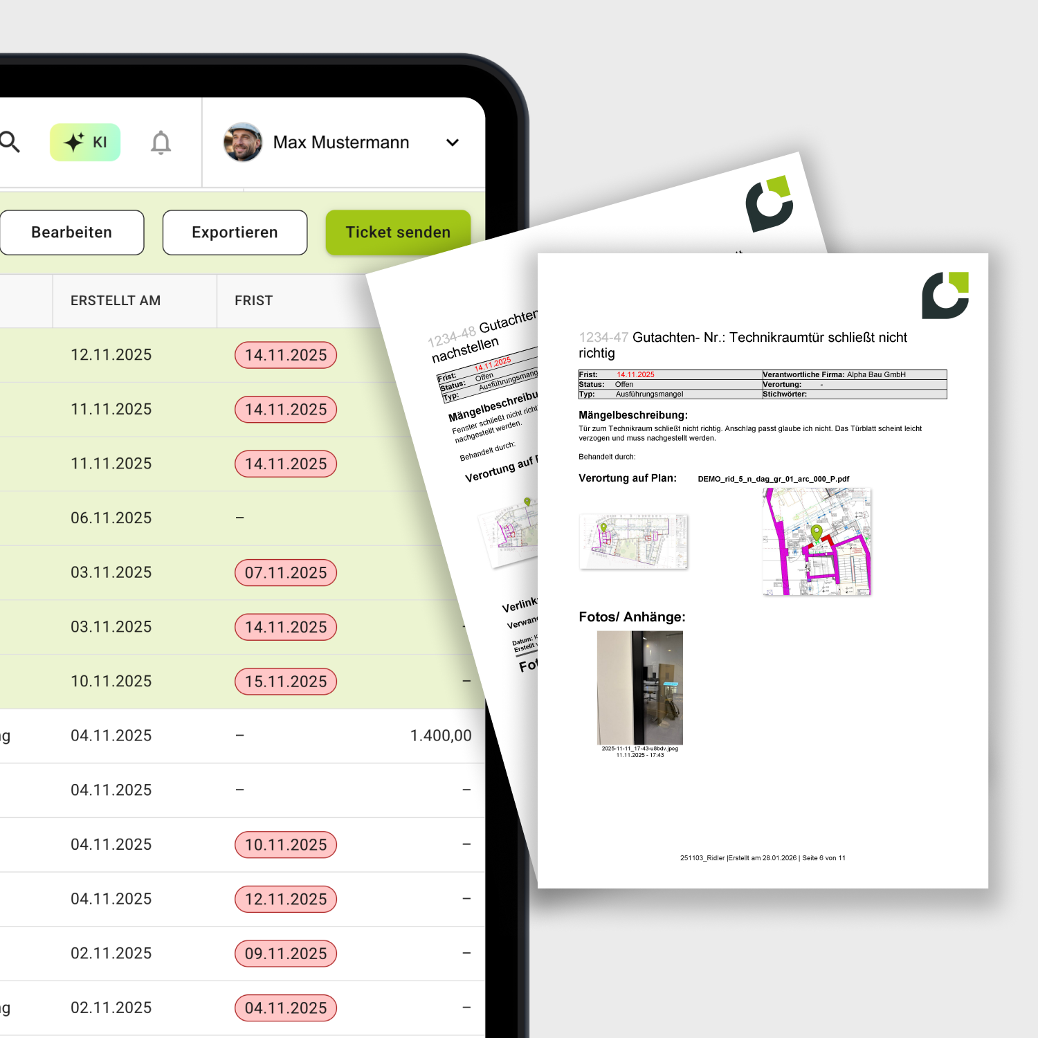 Dokumentierte Tagesinformationen in übersichtliche Bautenstandsberichte überführen.