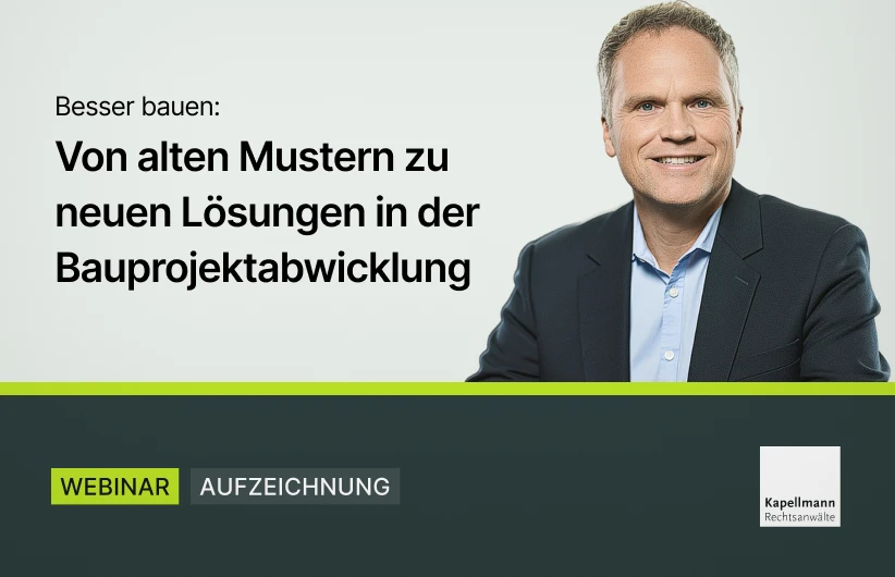 In diesem Webinar sprechen Prof. Dr. Heiko Fuchs, Partner und Fachanwalt für Bau- und Architektenrecht bei Kapellmann und Partner Rechtsanwälte, und Florian Biller, Geschäftsführer von Capmo, darüber, wie rechtliche Rahmenbedingungen und digitale Werkzeuge die Zusammenarbeit am Bau revolutionieren können.